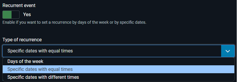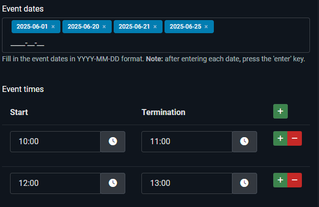- A cor informada neste campo será exibido no card do evento no lugar de onde ficaria a cor da categoria.